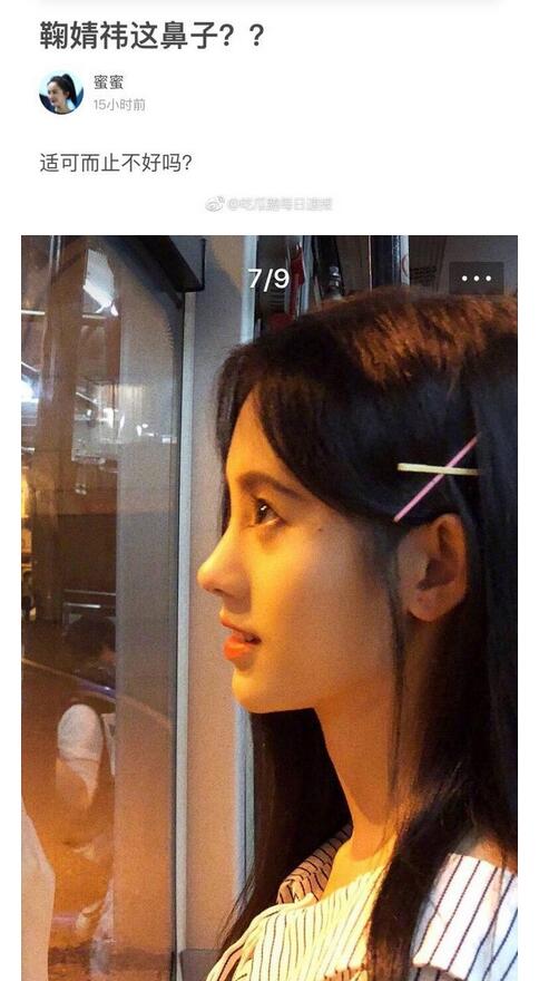 近日,就有網(wǎng)友指出,鞠婧祎的鼻子整的太過了,像匹諾曹一樣太翹了。