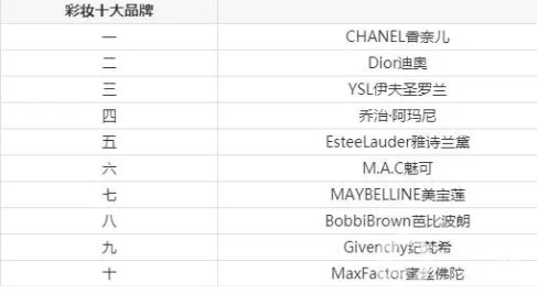 2019年彩妝品牌十大排名,M.A.C魅可位列第十名!
