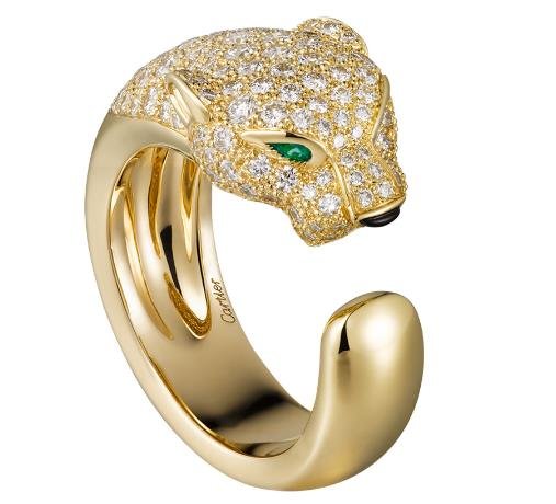 卡地亞美洲豹系列入門的窄版黃K金La Panthère戒,點(diǎn)綴黑色真漆、沙弗萊石豹眼與縞瑪瑙鼻的La Panthère戒,呈現(xiàn)了美洲豹伸展著軀體繞成手環(huán)或戒指的姿態(tài)。全新LA PANTHèRE系列以適合日常穿搭為設(shè)計(jì)主軸,除了18K金、白金或玫瑰金材質(zhì)外,還有黑漆或鋪鑲美鉆襯縞瑪瑙斑紋的華麗款。品牌更首度推出無斑紋點(diǎn)綴美洲豹戒指,吸引年輕客層。